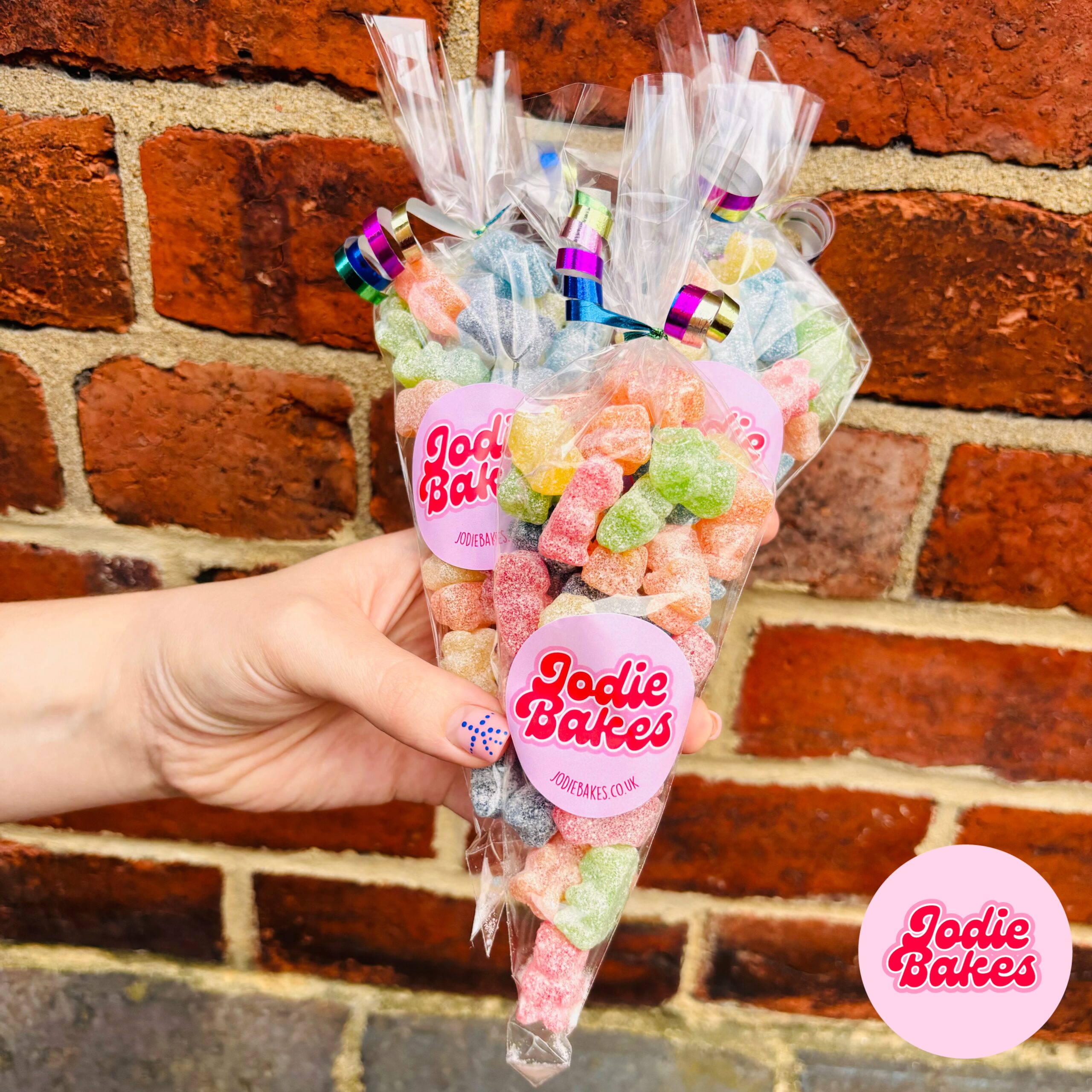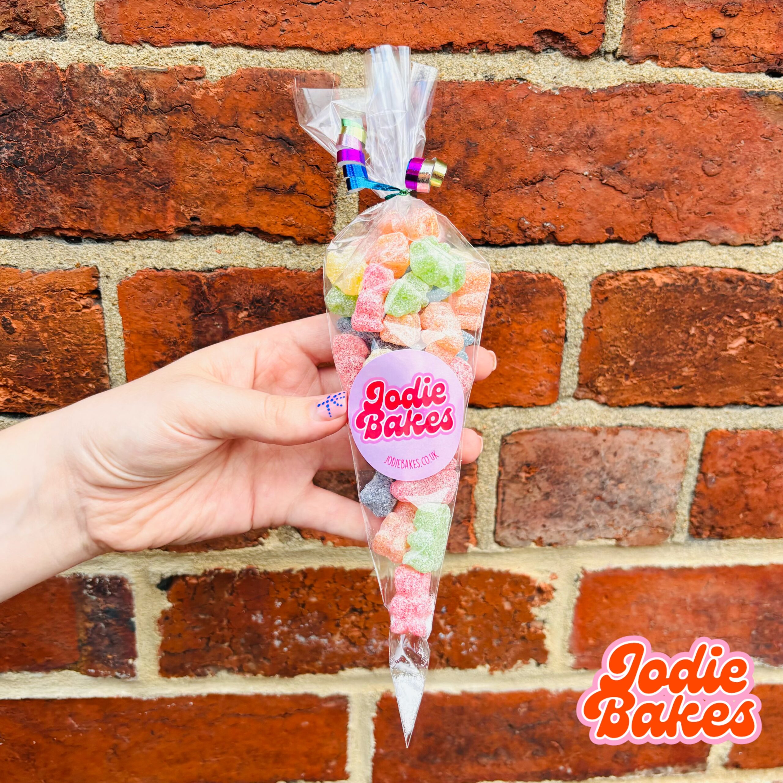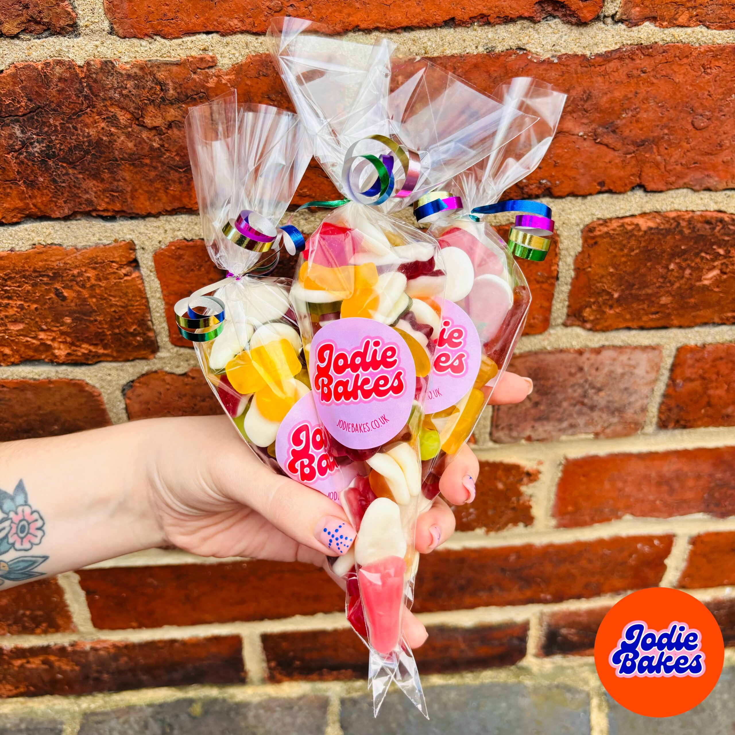 PERFECT PARTY BAG CONE, CHOOSE FROM A PICK N MIX OR A VEGAN BEAR MIX! ALL TIED UP NICELY AND READY TO POP INTO YOUR PARTY BAGS!